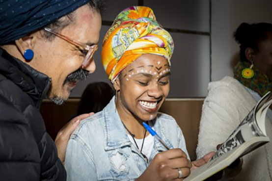 O coletivo Pretas com Poesia despontou na capital paranaense como um projeto cultural criado para visibilizar escritoras negras de bairros periféricos. Inicialmente composto por 16 integrantes, hoje o grupo conta com 40 escritoras de Curitiba, Região Metropolitana, Litoral e Oeste. O perfil das integrantes é variado – são cantoras, agricultoras, lideranças quilombolas, professoras universitárias e até estudantes de medicina, unidas pelo amor à poesia e pelas mais variadas formas de intervenção artística.