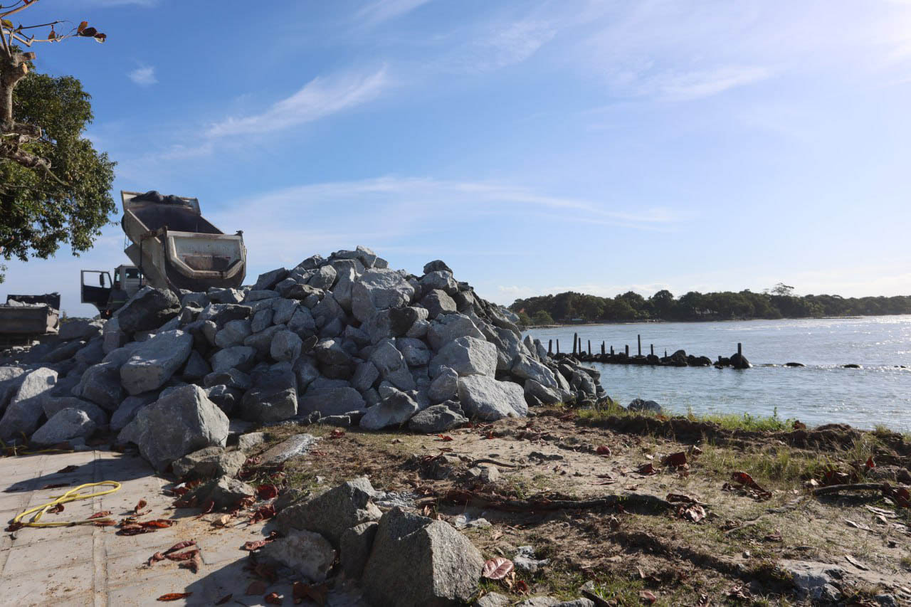 Chamada de desembocadura do Canal do DNOS, a área sofre atualmente com processos erosivos agravados pela força das correntes e pela oscilação das marés, que aceleram o deslocamento de sedimentos e reduzem a estabilidade da margem costeira. O processo de licenciamento e monitoramento ambiental está sendo coordenado pelo Instituto Água e Terra (IAT), autarquia vinculada à Secretaria de Estado do Desenvolvimento Sustentável (Sedest).