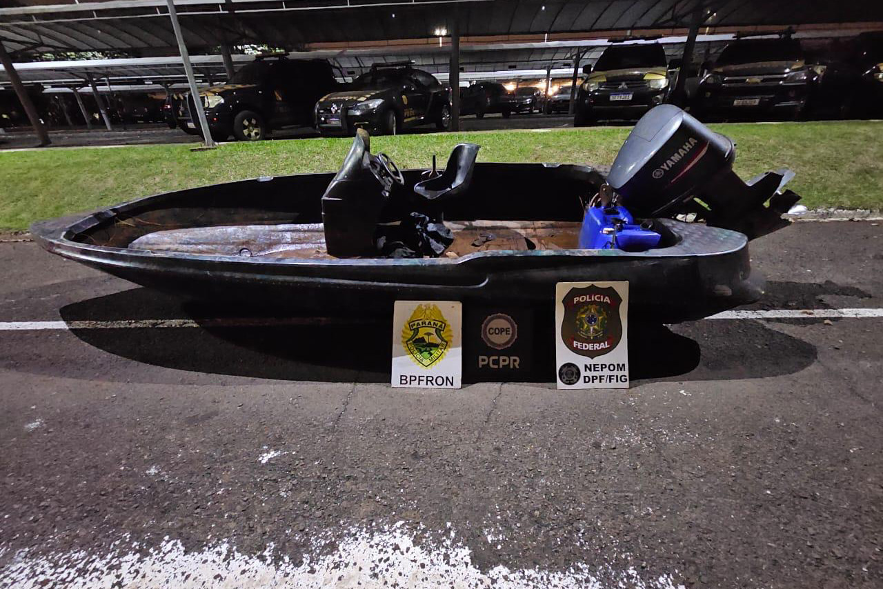 Durante um patrulhamento próximo ao Lago de Itaipu, as equipes policiais avistaram uma lancha se aproximando do território brasileiro, oriunda do Paraguai. Ao perceberem a presença policial, os ocupantes da embarcação fugiram, abandonando o barco e a carga ilícita.