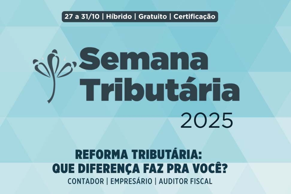 O evento acontece entre 27 e 31 de outubro, em formato híbrido, com atividades presenciais e transmissão online. A participação é gratuita, aberta a toda a comunidade, e garante certificado aos inscritos. As inscrições já podem ser feitas no site da Semana Tributária.