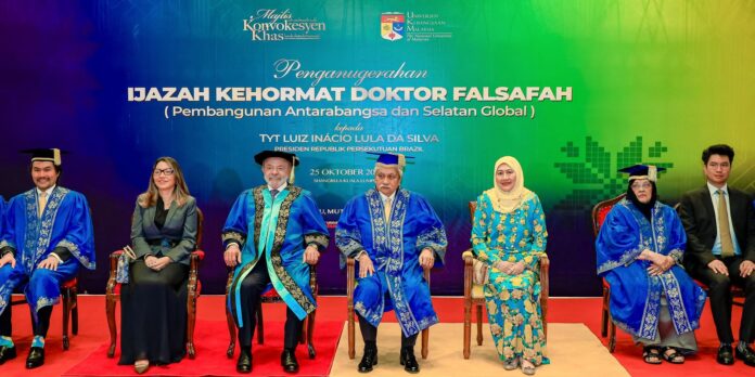O presidente Luiz Inácio Lula da Silva voltou a criticar a continuidade da guerra em Gaza e a resistência mundial em criar um Estado palestino. A declaração foi dada neste sábado (25), durante a cerimônia de recebimento do título de doutor “Honoris Causa” em Filosofia e Desenvolvimento Internacional do Sul Global pela Universidade Nacional da Malásia, em Putrajaya, capital administrativa da Malásia.