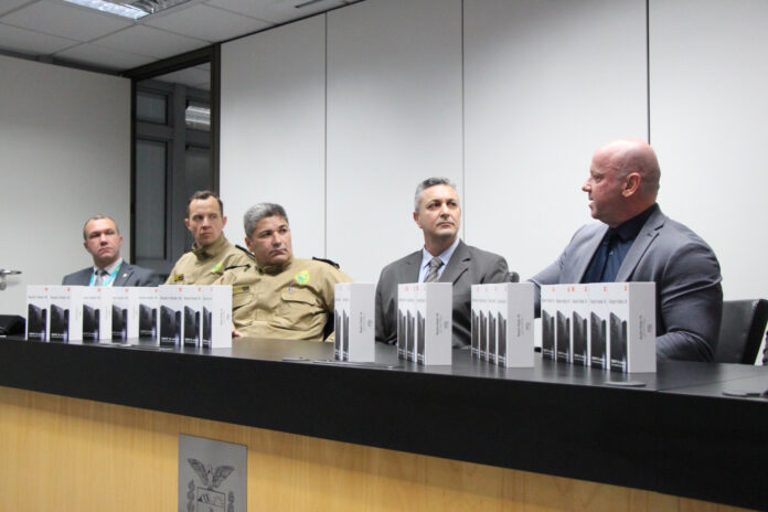 PRESENÇAS – A cerimônia de entrega dos aparelhos aconteceu na sede do Gaeco, no bairro Juvevê, e contou com a presença do procurador-geral de Justiça, Francisco Zanicotti; do promotor de Justiça Marcelo Alessandro da Silva Gobatto, do Gaeco de Maringá; do procurador de Justiça Cláudio Rubino Zuan Esteves, coordenador estadual do Gaeco Paraná; do delegado Fernando Tino Zanoni, do Departamento de Inteligência do Paraná (DIEP), que representou o secretário de Estado da Segurança Pública, Hudson Leôncio Teixeira; do major Reinaldo Friesen Junior, da Casa Militar; e do tenente-coronel Wagner Henrique Blum, da Corregedoria da Polícia Militar.