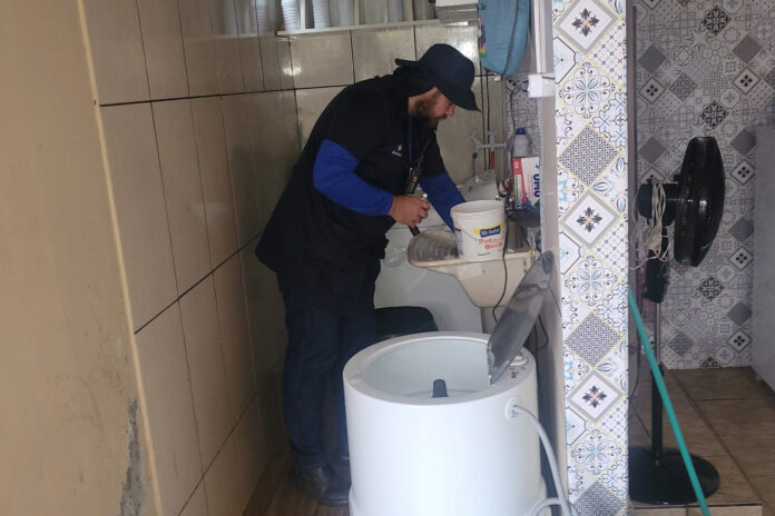 Na vistoria, os agentes aplicam corante nos vasos sanitários, pias, tanques, ralos e saída de máquinas de lavar roupa e louça, observando se o esgoto com o corante chega corretamente à rede coletora. Se preferir, o cliente poderá ele próprio fazer o lançamento do corante nos pontos orientados pelos agentes.