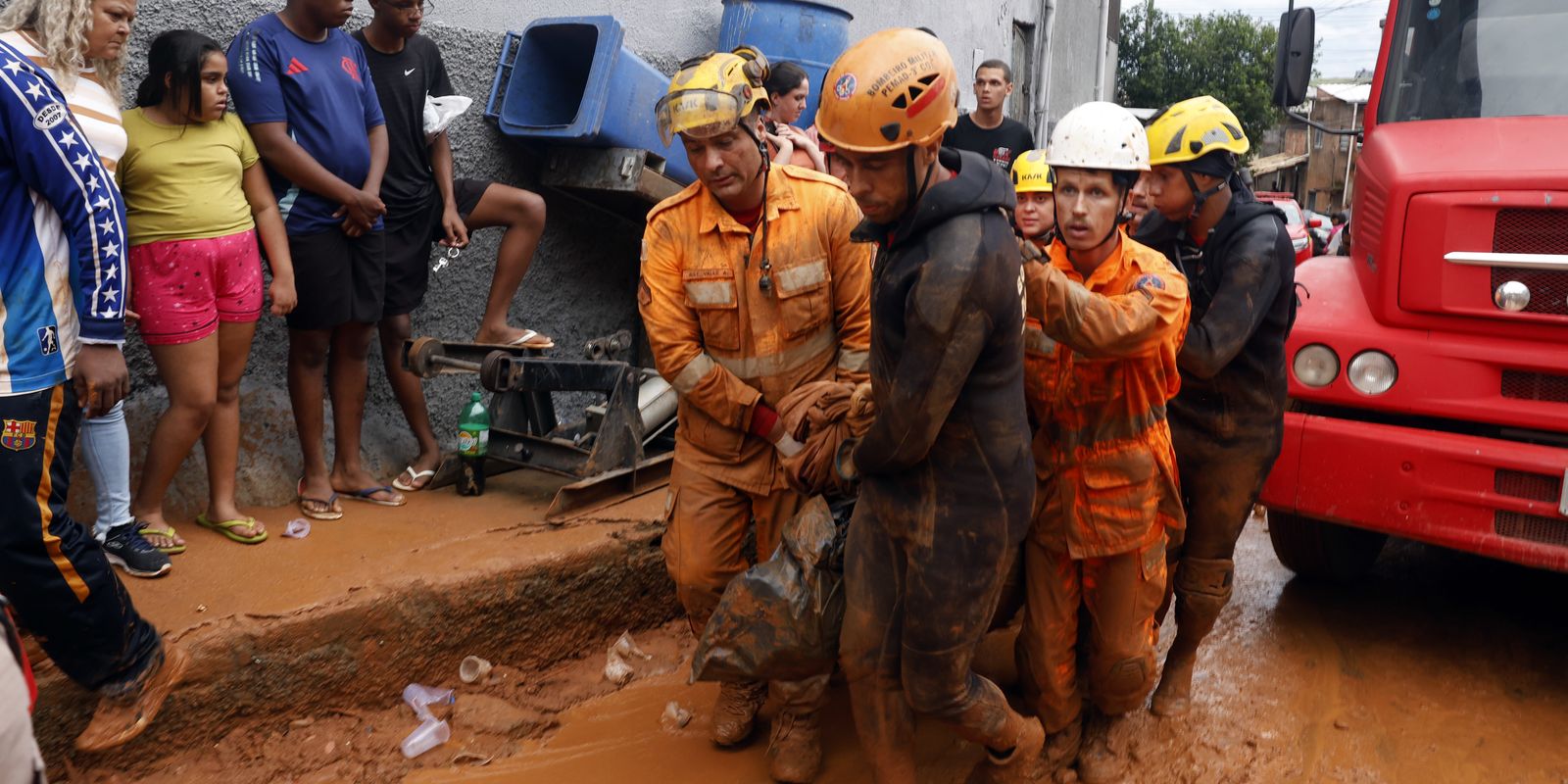 A mulher e o filho de Deivid também foram retirados dos escombros com a ajuda dos moradores do bairro.
